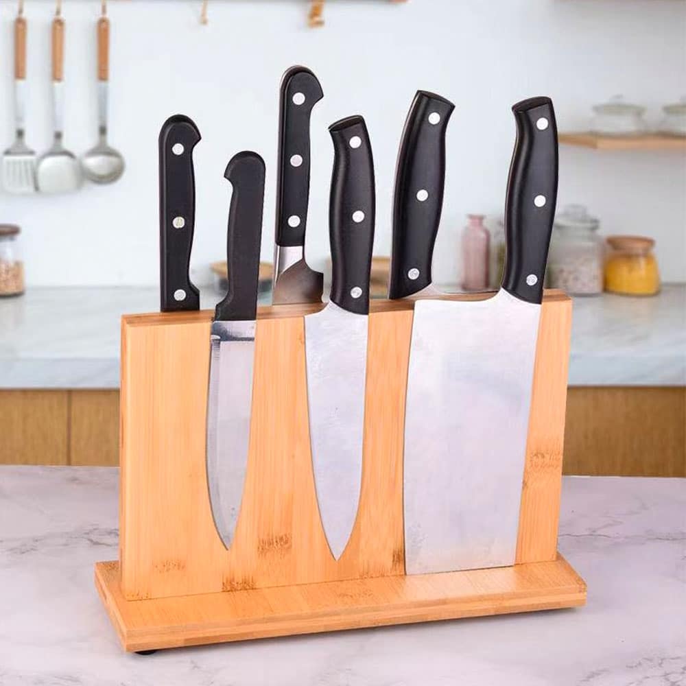 Porte-couteau magnétique en bois de bambou
